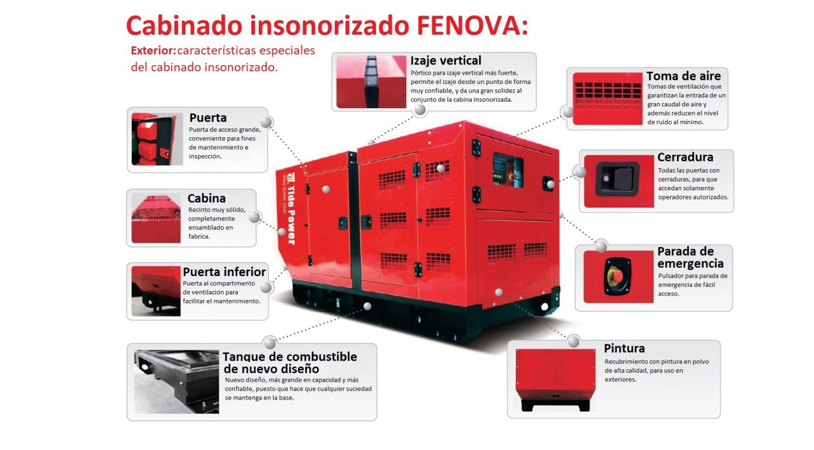 Su nuevo diseño de insonorización logra una alta reducción del ruido, lo que lo hace ideal para oficinas, edificios de departamentos, residencias, hospitales y cualquier otro lugar donde se necesite evitar la contaminación sonora. Este modelo incorpora un tanque de combustible en la base para una alta autonomía de funcionamiento.
